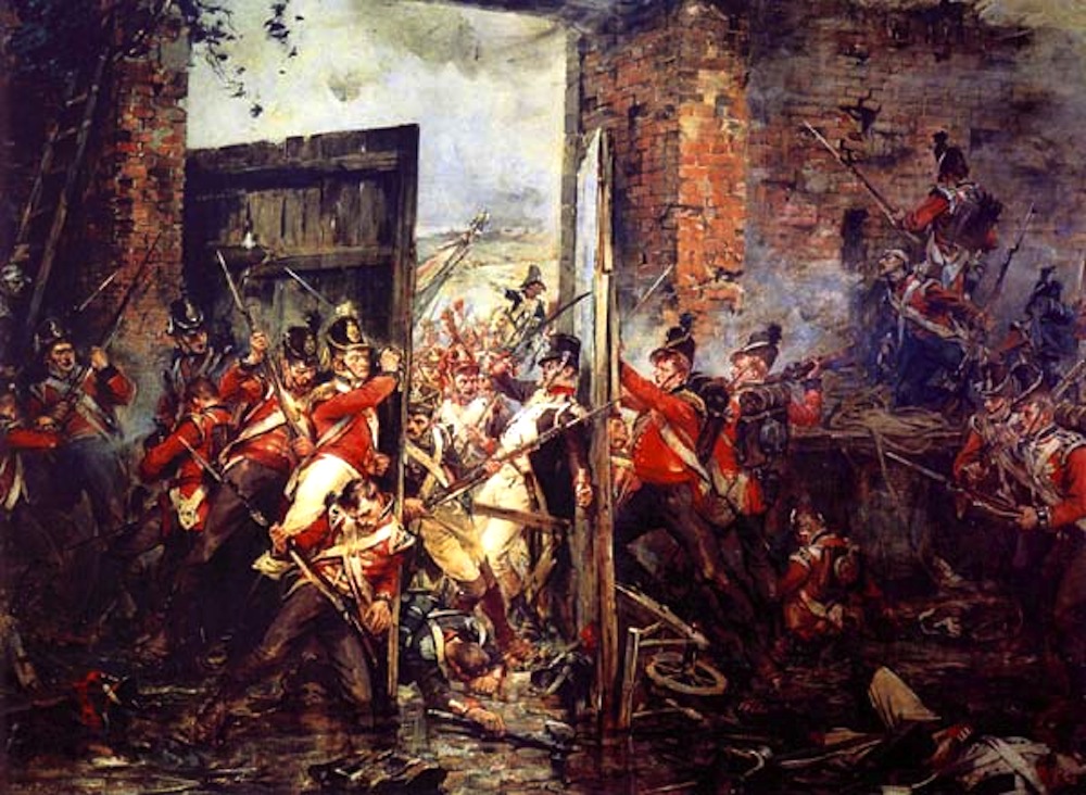 Στην αναφορά του της 19ης Ιουνίου 1815 προς το βρετανικό Υπουργείο Πολέμου, ο δούκας του Ουέλλινγκτον περιέγραψε ως εξής τη μάχη της προηγούμενης ημέρας: «Το εχθρικό ιππικό κατ’ επανάληψιν επετέθη ανεπιτυχώς κατά του πεζικού μας. Αυτές οι επιθέσεις επαναλαμβάνονταν έως περίπου τις επτά το βράδυ, όταν ο εχθρός κατέβαλε απέλπιδα προσπάθεια με το ιππικό και το πεζικό του, υποστηριζόμενα από το πυροβολικό, να εκβιάσει το κέντρο της παράταξής μας, κοντά στην αγροικία La Haye Sainte. Μετά από σκληρό αγώνα, το εγχείρημα απέτυχε.